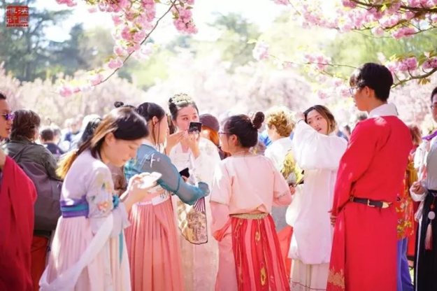浪漫的2019上巳节就此结束了,游人们兴致未尽,徘徊在园中与汉服成员合影。