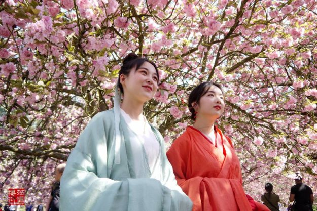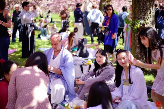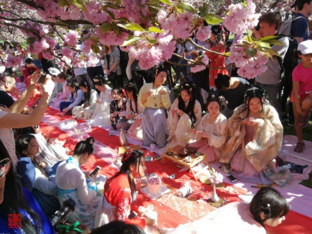 2019年4月20日,巴黎南部国玺公园(Parc de Sceaux)满园的重瓣粉樱在一片春日里怒放,法国博衍协会与上塞纳省国玺公园第五次举办了樱花上巳节雅集。笙歌鼎沸,佳人接袂成帷,花期如云。