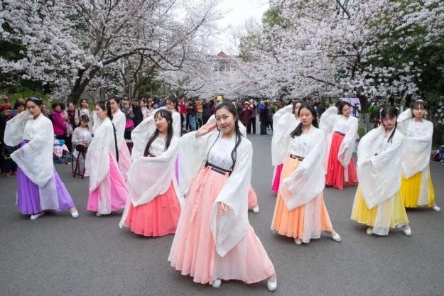 ▲2019年3月,身着汉服的女孩们在跳舞。(东方IC)
