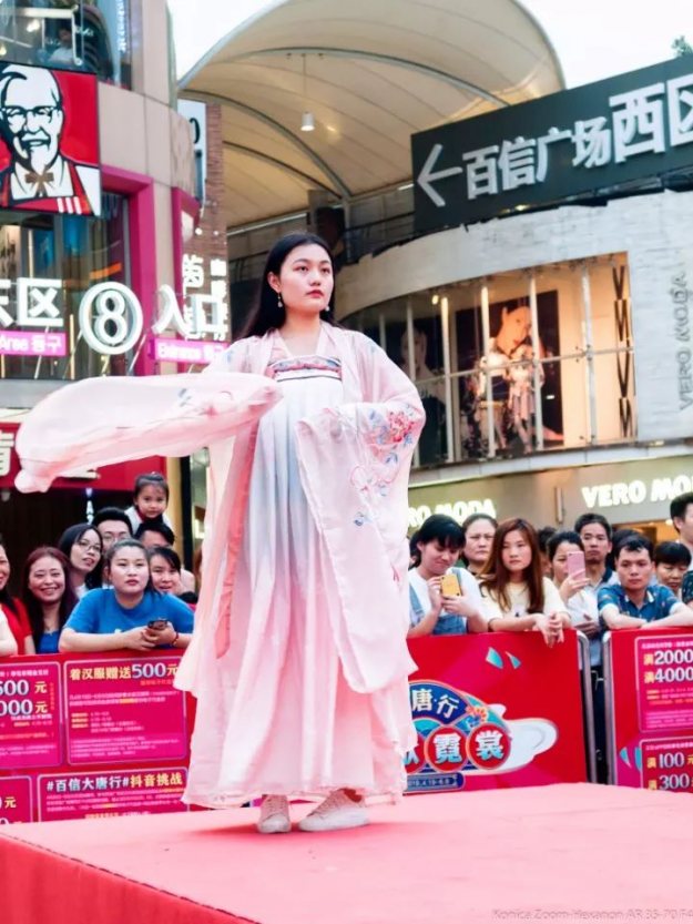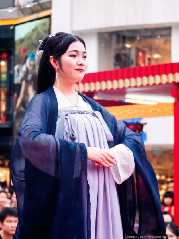 随着汉服复兴运动的发展,汉服开始活跃在T台上,例如华裳九州、华服日,还有广东时装周等等,汉服越来越多地走上了大秀场。