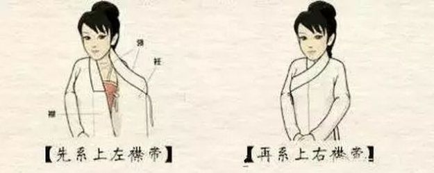 襟:汉服的衣襟,又名衽。使用时特指衣服的交叠重合处,以内外(或前后)襟区分,此为中原汉服的核心,注意,中原以外的少数民族装束一般为左衽。