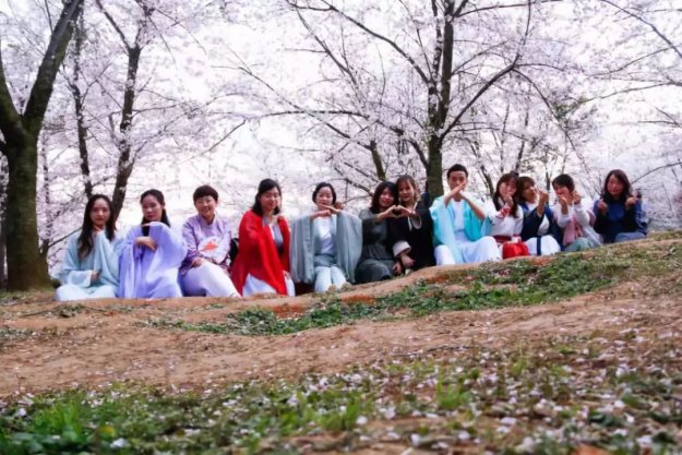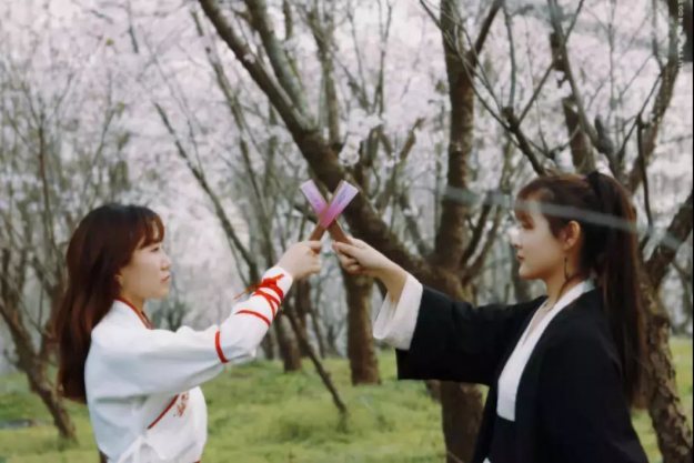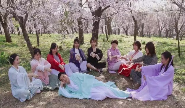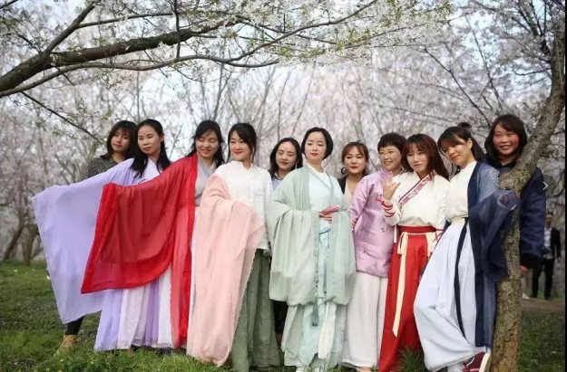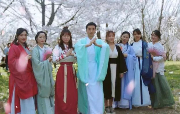 而现在,咱们有一群小伙伴们,正在美丽的樱花里展现汉服的美,一起来看一看~