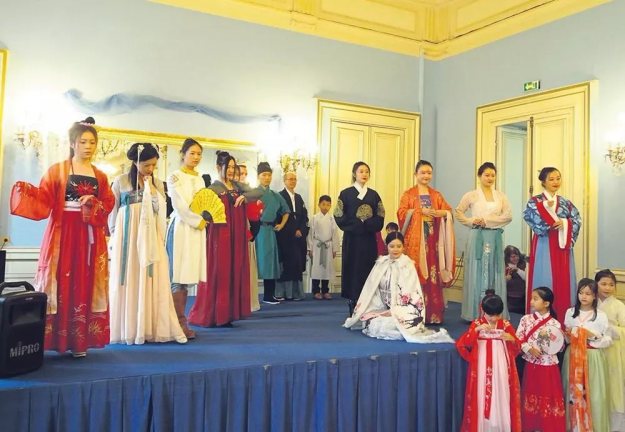 2月9日,由法国博衍协会与巴黎20区政府联合主办的新春庆典在20区政府举行。活动期间,由仲巾函所带领的团队带来一出出精彩的表演,《狂浪生·离人愁》扇舞表演将中国的折扇艺术与传统舞蹈相结合,灵动而飘逸;《宫廷茶礼》为观众带来一场别开生面的茶道表演,感受中国传统茶道的魅力;《汉服时装秀》展示了中国古代各个时期的汉服样式,云佩霓裳、翩翩神采,将整个活动推向高潮。
