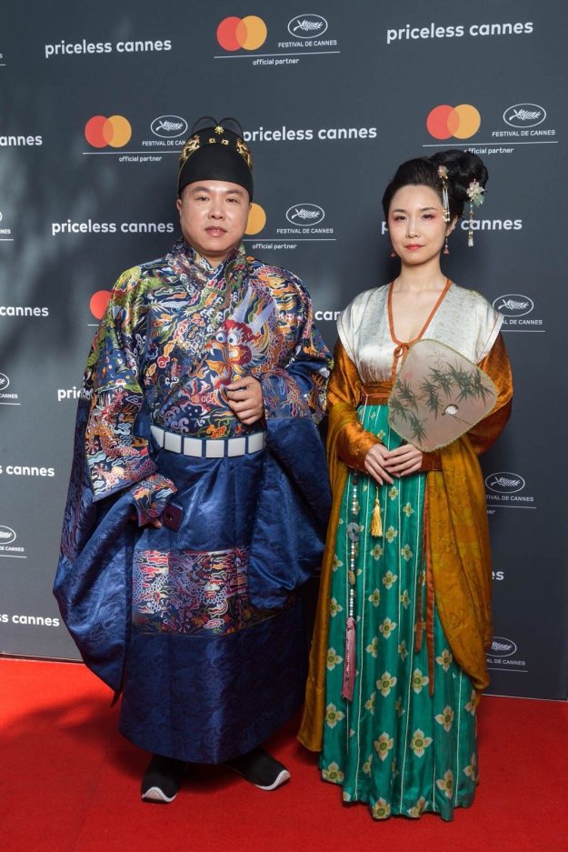 5月16日晚,福建汉服天下协会会长郑炜、法国博衍协会会长仲巾函(原名仲月茹)共同登上戛纳红毯,向世界展示来自中国的传统汉服风采。