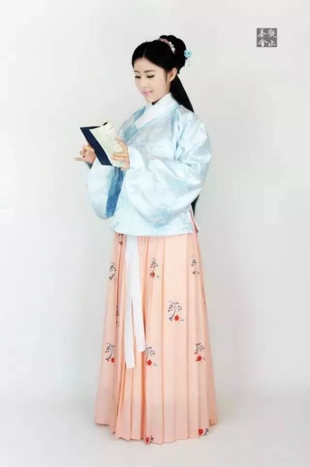 襦裙出现在战国时期,兴起于魏晋南北朝。襦裙属于汉服的一种,上身穿的短衣和下身束的裙子合称襦裙,是典型的“上衣下裳”衣制。上衣叫做“襦”,长度较短,一般长不过膝,下身则叫“裙”。可见,“襦裙”其实是两种衣物的合称。
