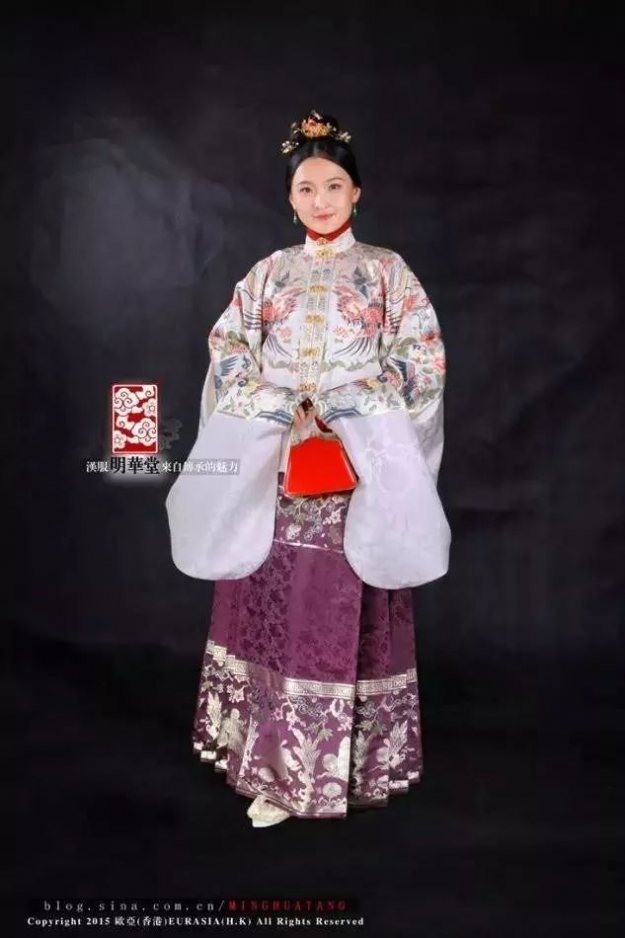 到了明末,裙子的装饰日益讲究,裙幅也增至十幅,腰间的褶裥越来越密,每褶都有一种颜色,微风吹来,色如月华,故称“月华裙”。