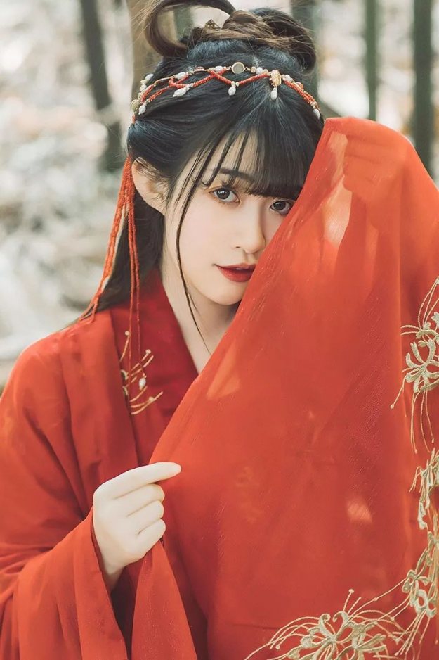 下裙面料以丝织品为主,以多幅为佳,裙腰上提,此时裙色鲜艳,多为深红、绛紫、月青、草绿等,其中以石榴红裙流行的时间最长,色彩多样,多中求异,让人眼花缭乱,目不暇接。 如唐中宗的女儿安乐公主的百鸟裙,堪称中国织绣史上之名作;武则天时的响铃裙,将裙四角缀十二铃,行之随步,叮当作响,可谓千姿百态,美不胜收,与短襦和披肩相配一体,尽显盛唐女子雍容华贵的丰腴风韵,表现出极富诗意的美与韵律。