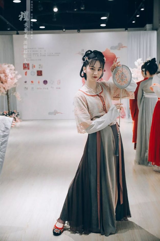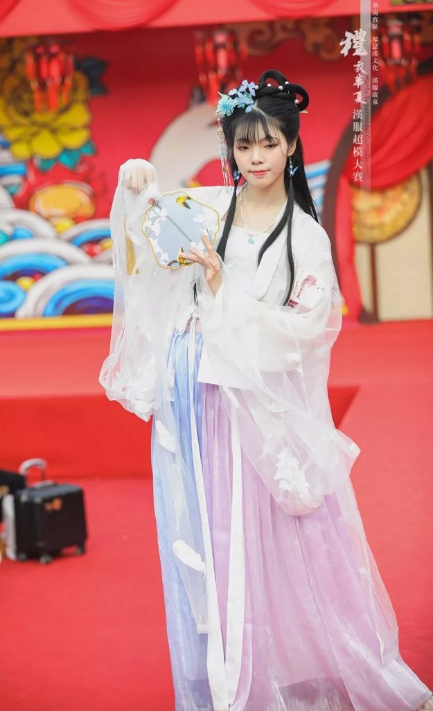 其实最让小编忍不住尖叫的是一个小姐姐,小姐姐很高,第1场走秀穿的是一套晋襦,好看,但是不算太出众(左2)。