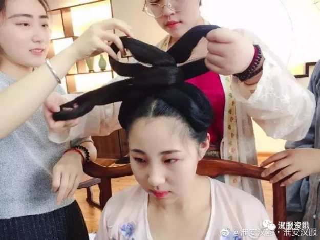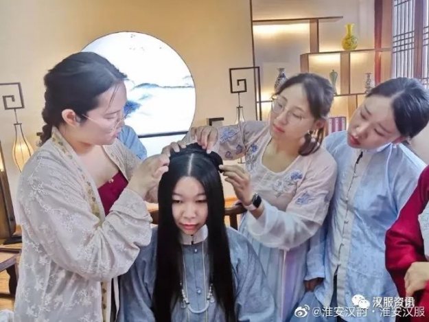前期经过多次协商,2019年5月19日,“淮安汉韵•淮安汉服”邀请到了有着“天下第一梳”美誉的杨树云大师的亲传弟子、《梳缕》一书的作者之一——宇儿(张兴宇@归素·宇儿)——在清江浦文庙崇圣书院为大家讲了一节汉服造型实践课。
