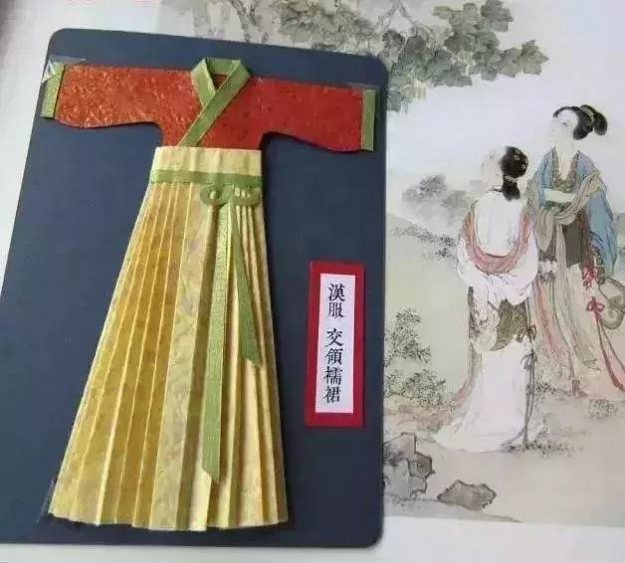 13、裙子上部腰围比上襦衣襟底部稍宽,可以盖住上襦。下裙底部要比腰宽,并且底部要有一点弧度。