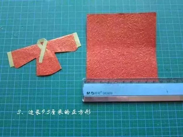 4、按照白纸(为放大图)上的标注大小的实线条画在原来纸上。注意:左上角一定是两次对折中间的交叉点,一定不要弄错了。