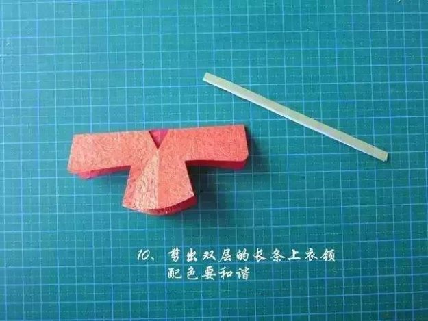 10、开始做领子!不要太宽也不要太细。这里的宽度目测是0.5厘米左右~剪好后把它用固体胶黏上去。
