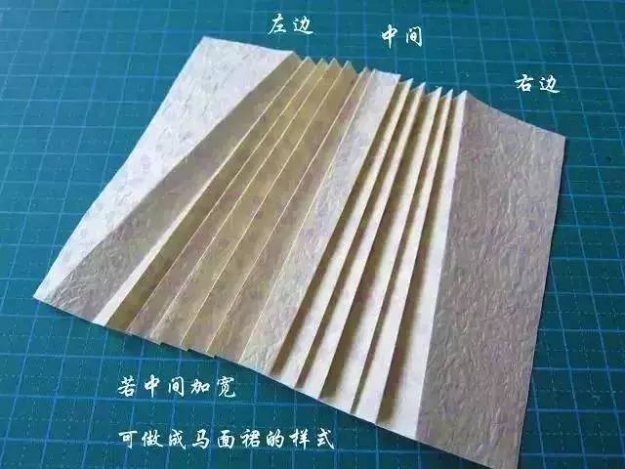 11、要做下裙了.....做下裙说没啥技术含量,有的人又的确折不好这一道道细细的褶子,还是非常考验耐心的~开始折吧!