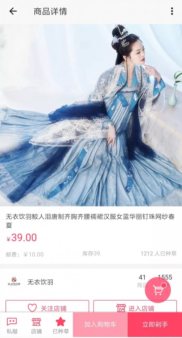 点一下右下角的加入购物车,新世界在等着你:)另外一些比较便宜的汉服请务必看!完!宝!贝!详!情!再剁手。前文提到的定金尾款模式也会造成选项蜜汁便宜的情况出现。