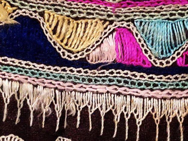 由于生产成本所限,如今的成衣刺绣多用机器,但是我们依然可以通过“民族审美”去改变它。机器运用的针法不如人工灵活,但是已经十分丰富了,比起如今填色式的机绣,追本溯源去研究技艺和艺术,也可以获得价廉物美的刺绣服饰。