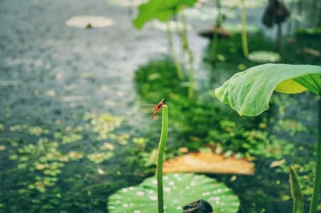 小荷才露尖尖角,早有蜻蜓立上头。