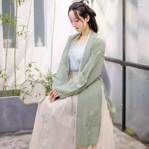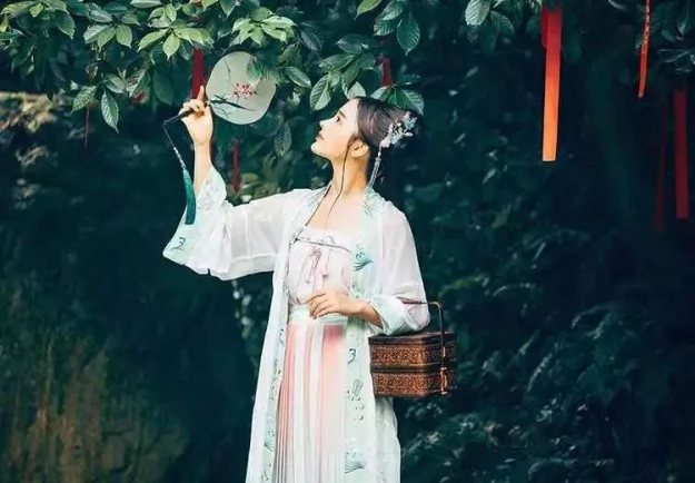 想把汉服穿出少女感,那简直太简单了。对襟襦裙,颜色可以选择清亮的颜色,给人一种来到夏日湖畔的清凉感觉。上襦在夏季可以充当防晒衫,穿出门去刚刚好。
