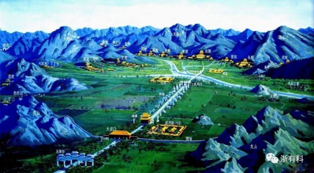 我国古代帝陵选址很讲究“规矩”:必须依山而陵,后续帝王还要葬在附近。所以帝陵通常面积广阔,位于皇城之外,远离城市核心生活区。例如明十三陵:此地距离北京约50公里,处于东、西、北三面环山的小盆地之中,自永乐七年(1409)五月始作长陵,到最后一帝崇祯葬入思陵止,期间230多年共埋葬了十三位皇帝。