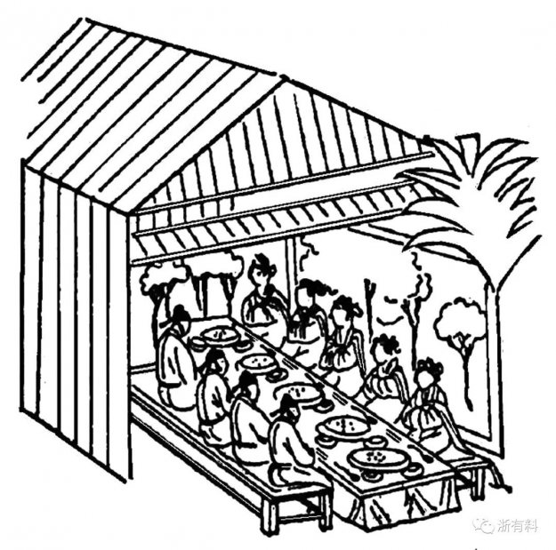 据专家考证,其实在唐代之前,中国人用餐皆是分食制,即用餐时“一人一份”。《史记》载鸿门宴云:“项王、项伯东向坐。亚夫南向坐,亚夫者,范增也。沛公北向坐,张良西向侍。”这段充满方位感的描述,无疑为我们展现了汉代宴会分食的画面。