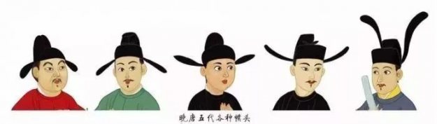 ▲ 晚唐、五代的各种幞头脚,从短脚到八字、到平直、到上翘冲天,各种夸张都有。