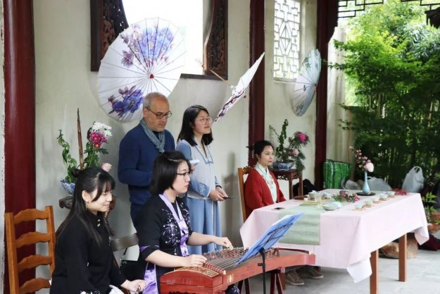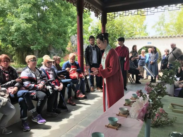 着汉服,赏丝竹,品香茗,寻古人之路,品古人之乐。更有艺术家们分别诠释出多元而别致的华夏魅力,使得园中节日氛围十足。