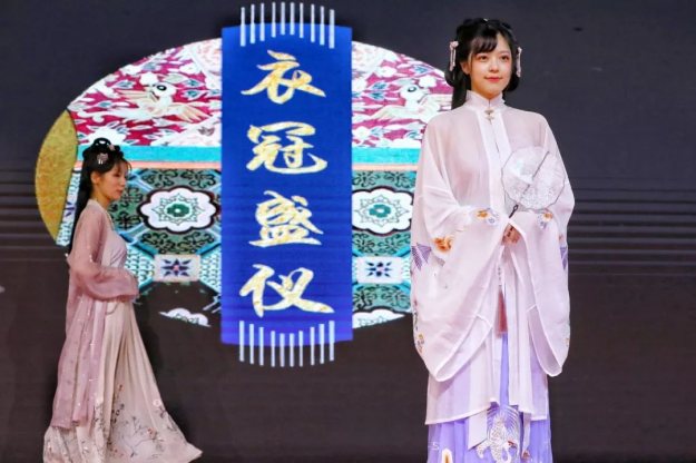 下午1时起,一场名为“衣冠盛仪”的国风大秀在中央舞台举行。