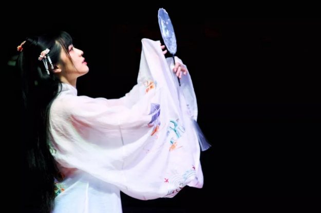 舞台上,宽袍广袖、绮衣锦裳……身着汉服的古风美女一颦一笑间,宛如穿越而来的佳人。