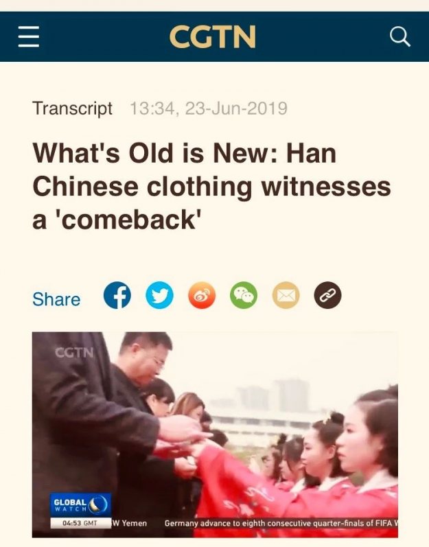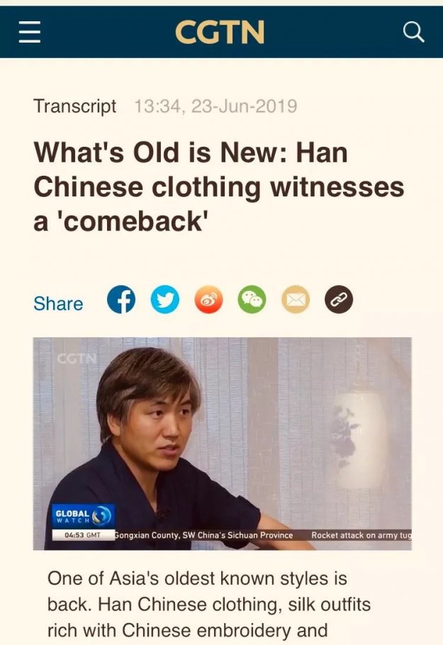 中国国际电视台CGTN:传统以辅新命:汉服见证了“文化复兴”