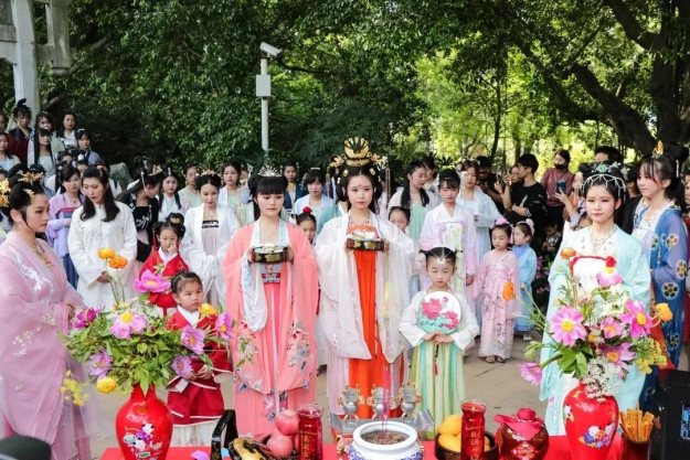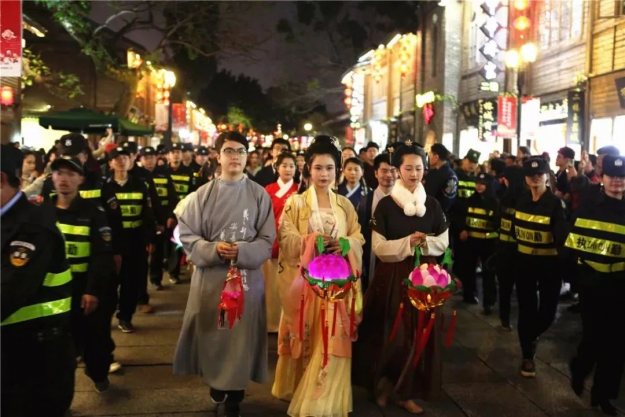 花朝节乌山祭花神、中秋节三坊七巷摆塔、七夕节安泰河畔放花灯……每逢传统节日,他便会带领社团的年轻人身着汉服,在福州各个历史文化名胜景点举办民俗活动。