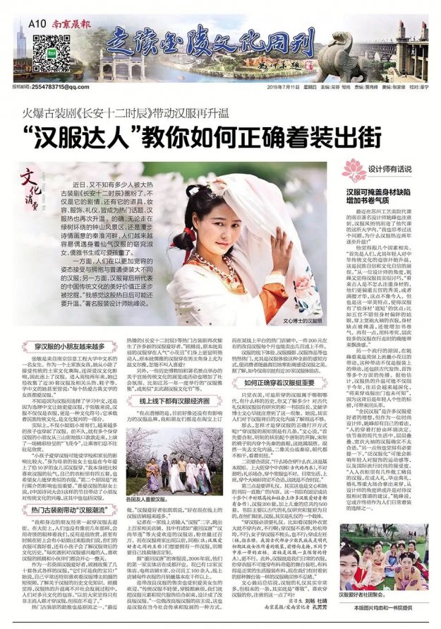 近日,又不知有多少人被大热古装剧《长安十二时辰》圈粉了,不仅是它的剧情,还有它的道具、妆容、服饰、礼仪,皆成为热门话题,汉服热也再次升温。的确,无论走在绿树环绕的钟山风景区,还是漫步诗情画意的秦淮河畔,人们越来越容易偶遇身着仙气汉服的窈窕淑女、儒雅书生或可爱孩童了。