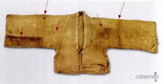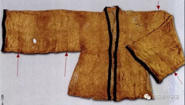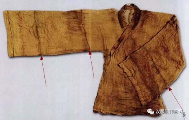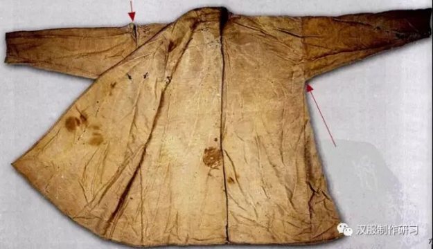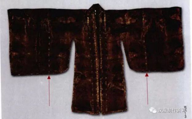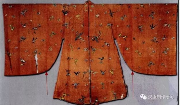 1980年贵州张守宗夫妇墓女室出土,贵州省博物馆藏衣长74cm,通袖长180cm。衣服和袖子是用的两种不同的面料!
