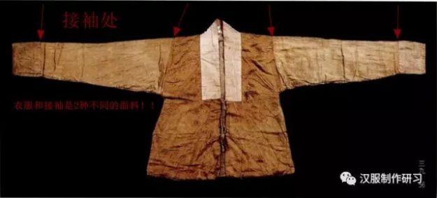 华夏民族的先人们是很聪明和优秀的,连袖长这种规定都是以回腕和回肘来定的,可见考虑事情之周祥的。如果接袖的位置有规定,或者说有默认的话,那么绢只有30cm的幅宽又如何来做衣服呢??如果是幅宽比较宽的面料衣服要在肘下接袖,是不是为了所谓的规定要把面料剪下一块浪费一截,非要挪到肘上再接呢??浪费可不是我们民族的传统。