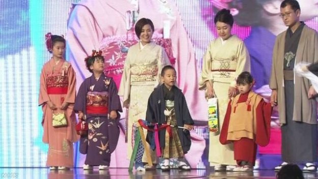 日本方面,介绍了祈祷儿童健康成长的“七五三”,以及结婚典礼上人们穿着的和服。穿着裙裤的男性、穿着漂亮的长袖和服的女性登场亮相。
