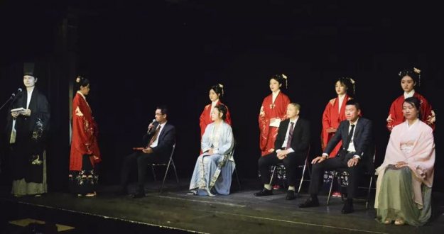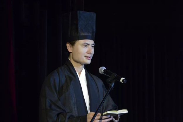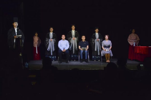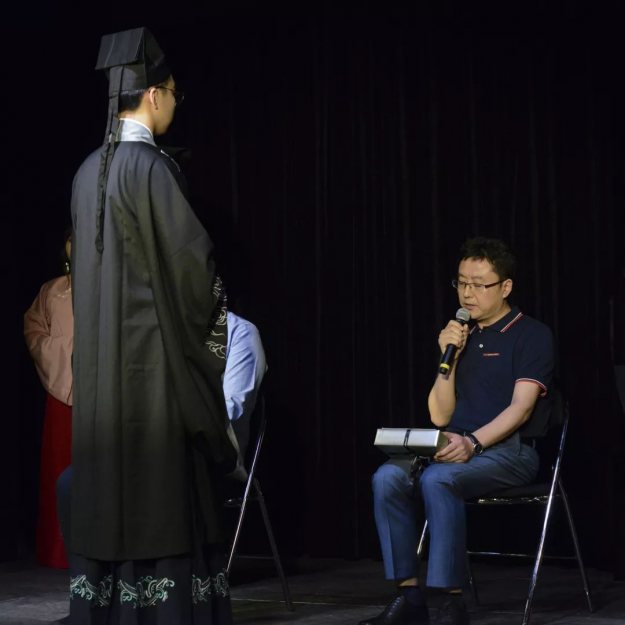 上午十点整,观礼嘉宾入座,司仪蔡泽鸿身着汉服,头戴东坡巾,宣布成人礼正式开始。
