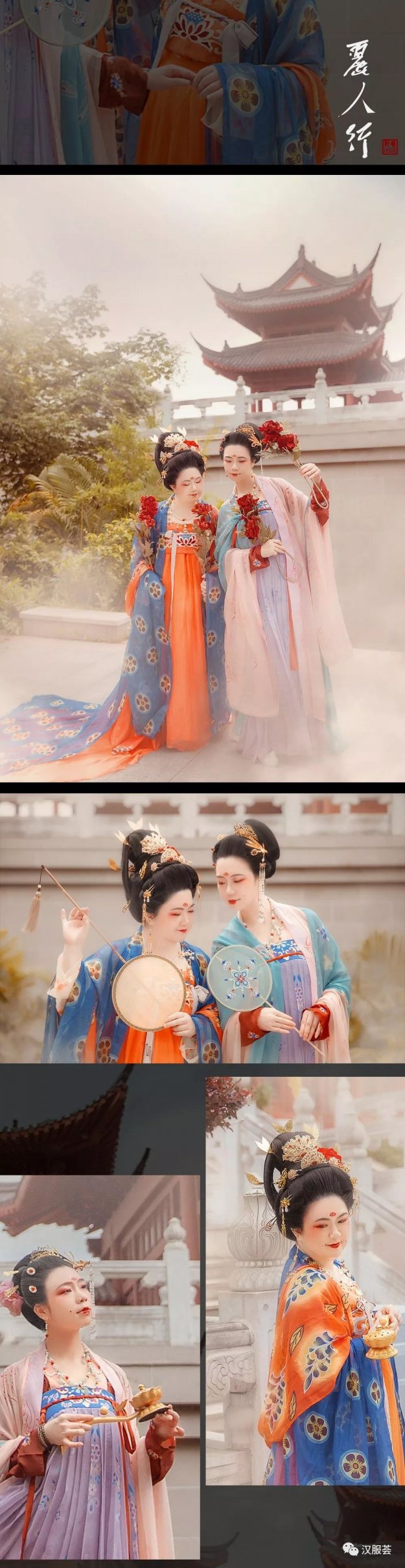 原创日常汉服女装印花对襟长褙子套装抹胸民族风女装非古装惊梦