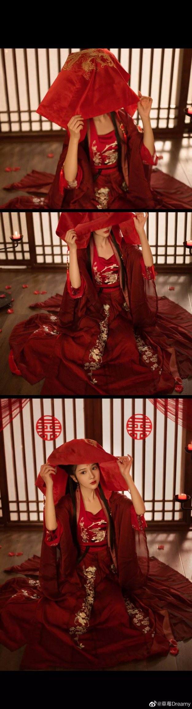 【汉服美图】我一早就知道,盖了这红盖头,便不能回头了 @草莓Dreamy 2019-08-30 03:39 「倾城」“我一早就知道,盖了这红盖头,便不能回头了。”她妩媚的笑容有些讽刺。“偌大一座城池的命运,竟都要交给我么?”摄影|后期:出镜:@仓大佬妆造:@虞丘素就是素素啦衣服@宴山亭传统服饰定制_初六 家的花嫁