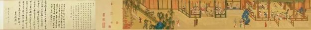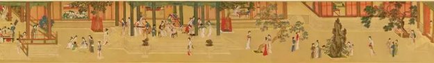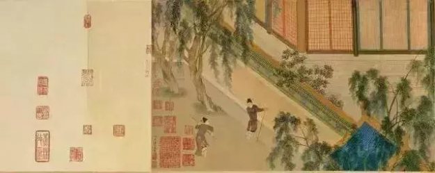 行至卷中,便是画面的高潮部分,主要以三处宫苑为主要活动场景。