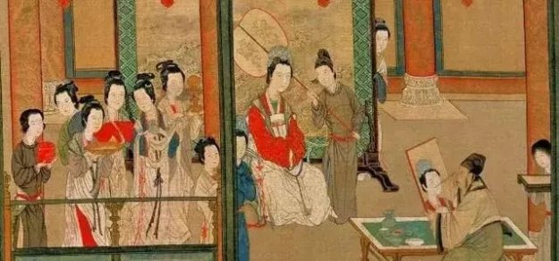 接着是第三处宫苑,这里有人正在画像,两旁站着数十位宫婢侍从,其中一位嫔妃正在接受画像。