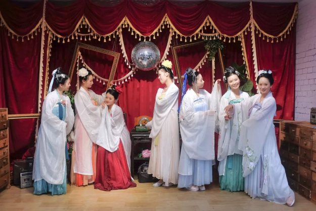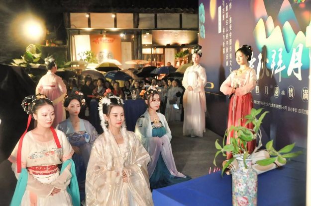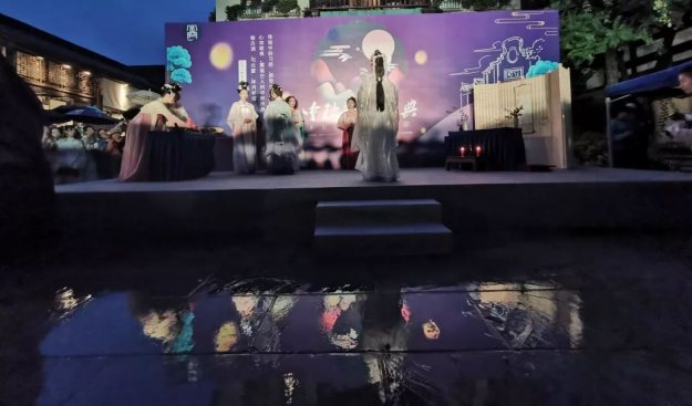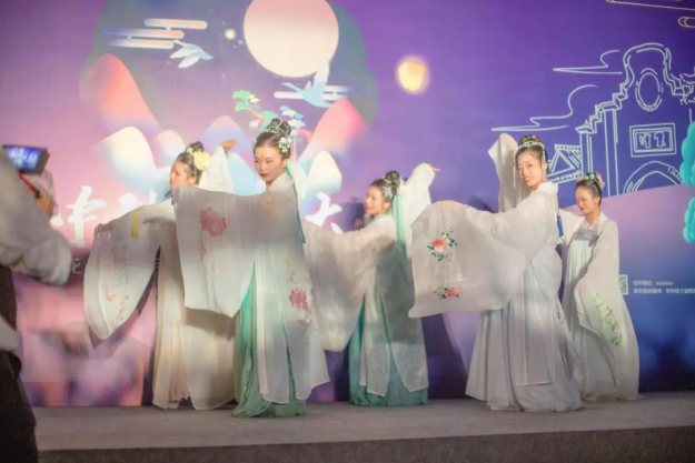 如此良辰美景,当然要有节目助兴。当天晚上四川汉服的保留节目《鹊桥仙》再次呈现在大家的眼前。七位美丽的仙子,在月下翩翩起舞,婀娜多姿,让汉服的雅与舞蹈的美完美展现。