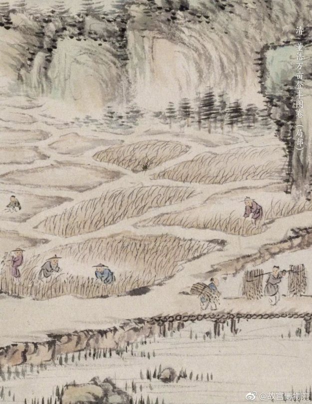 图源:故宫博物院微博 秋季降温快的特点,使得秋收、秋耕、秋种的“三秋”大忙显得格外紧张。秋分棉花吐絮,烟叶也由绿变黄,正是收获的大好时机。华北地区已开始播种冬麦,长江流域及南部广大地区正忙着晚稻的收割,抢晴耕翻土地,准备油菜播种。秋分时节的干旱少雨或连绵阴雨是影响“三秋”正常进行的主要不利因素,特别是连阴雨会使即将到手的作物倒伏、霉烂或发芽,造成严重损失。故乡村经验是,“秋分只怕雷电闪,多来米价贵如何”。