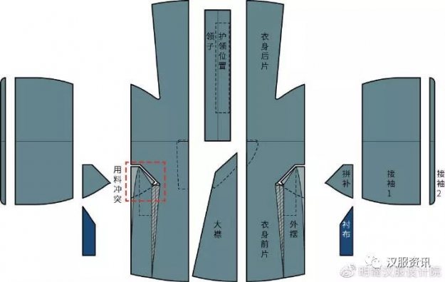 图4 直身裁剪示意图,仅展示裁片组成不代表实际比例,图中未表示缝份