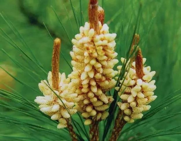 唐温庭筠的《南歌子》诗句里也提到:“扑蕊添黄子,呵花满翠鬟。”可见额黄的黄粉很有可能就是松花的花粉,这种花粉色黄且有清香,而且有"润心肺,益气,除风止血"等功效。