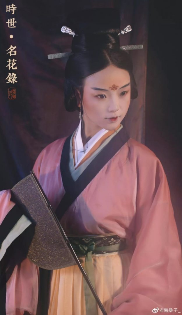 从南北朝到唐朝,女子们都爱上了这种化妆方法,纷纷在额间涂上黄色作为点缀。有的时候黄色堆积在额头,看上去就像小山,称之为“额山”。