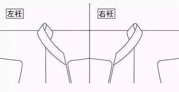 前襟后裾的中缝称为裻,即督脉、任脉,衽在任脉右侧,故称右衽。