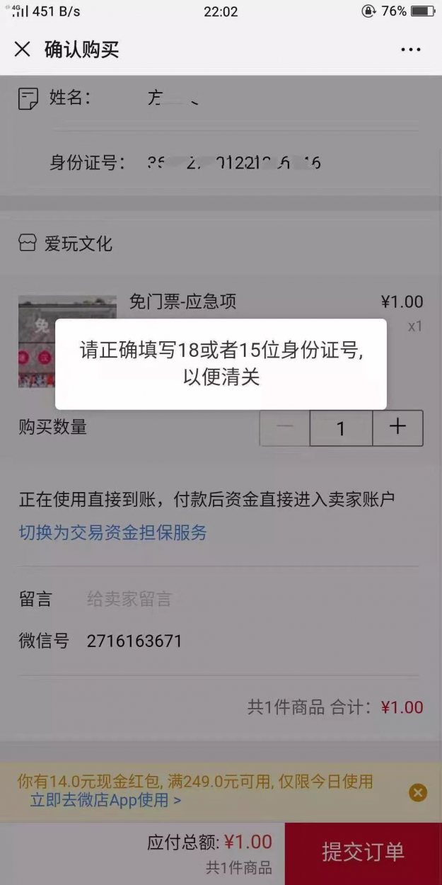 4)不建议去华文版图微信公号的微店链接购买,因为据同袍说,这个连接的微店只输一次身份证号码,一直让正确书写身份证号,报错无法购买。
