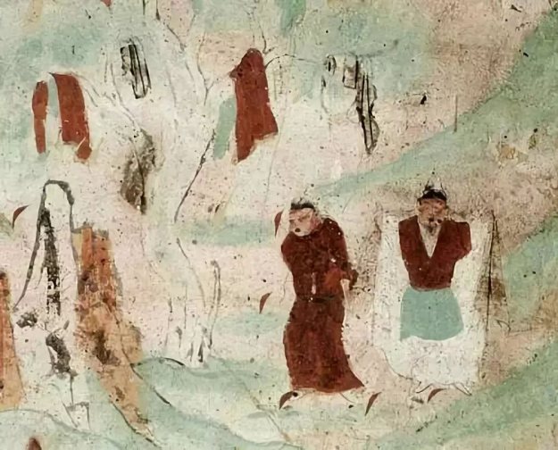 ▲敦煌莫高窟116窟盛唐弥勒经变之“树上生衣”,穿在袍内的暗红带碧襕的半臂衣[2]