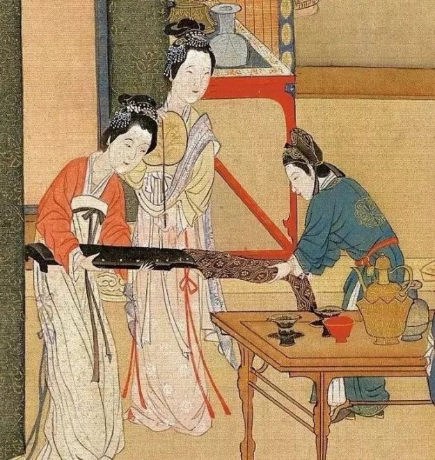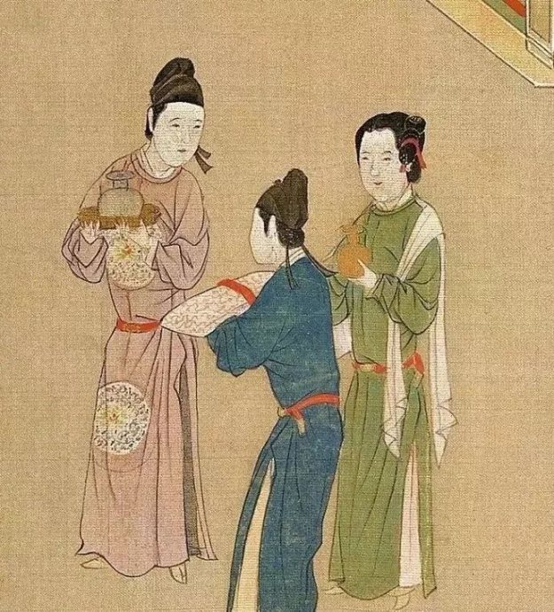 深衣有曲裾与直裾之分,裾为衣服的大襟。直裾,就是衣襟从身子的侧面垂直而下。曲裾,则是把衣襟接长为三角形,绕到身后,然后用丝带系扎。直裾其实很像当时的内衣袍,而东汉后,它们也确实合二为一,变成既可内穿也能外穿的“袍”。隋唐时期,承袭深衣形制的袍,遇到了喜欢胡风的皇帝。于是胡人的圆领与汉族的长袍(交领)被合为一体,变为圆领长袍,而且还成了官服。
