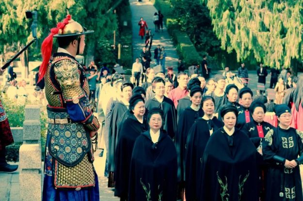 (中华礼乐大会:汉服运动得到了长辈们的肯定和大力支持,这是“大妈”团参加礼乐大会祭祀岳飞活动,场面震撼。)