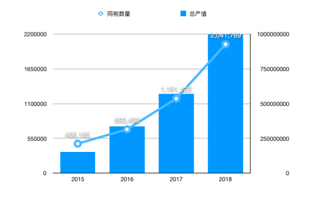 事实上,这场由民间自发的“汉服复兴运动”,已持续了十五年,但近几年才逐渐进入大众的视线。据专门整理汉服相关信息的自媒体“汉服资讯”统计,2017、18年,淘宝排行前十汉服商家总产值,每年都实现50%左右的增长,至2018年达3.16亿元。据估算,2018年的汉服产业市场规模为10.34亿元,全国的“同袍”数量,达两百万人。