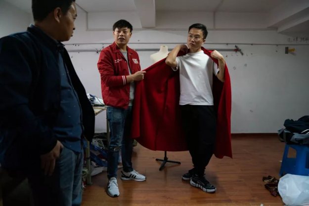 去年十月,安臣在西塘汉服文化周上感受到这个市场巨大的潜力,便成立了自己的汉服品牌,工作室设在苏州吴中区一套住宅里。团队里有转型的公关人,也有动漫圈的资深coser。从研究形制、设计图案开始,四个男生终日埋首在图纸和样品之中。一年后,他们推出了第一个系列。